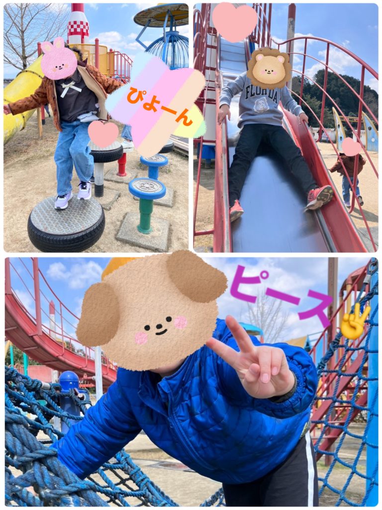 公園には普段できないような大きな滑り台や網のジャングルジム、ボールプールなどがいっぱい‼️