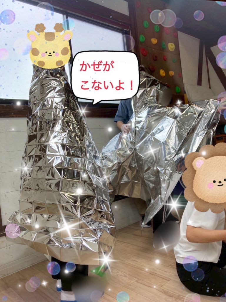 防寒対策として必要な簡易のブランケットです。雨☔や風🌪️にも強く、防寒として非常時に役立つものですね。