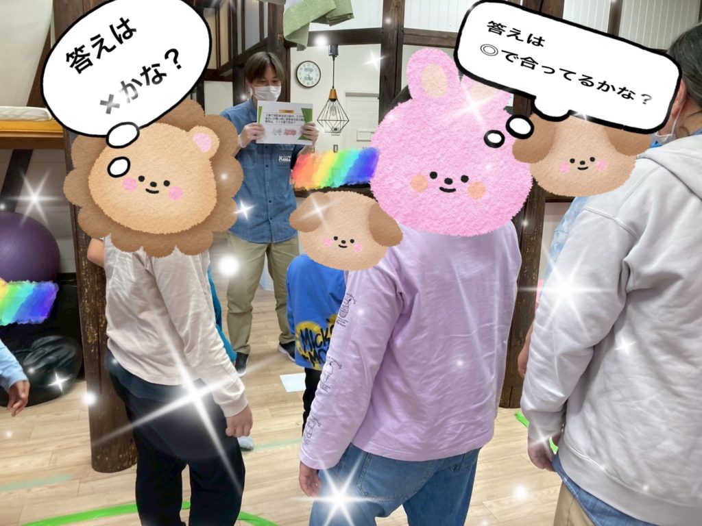 また、防災クイズでは、自分が正しいと思う行動の方に移動をして⭕️か❌で答えてもらいました!