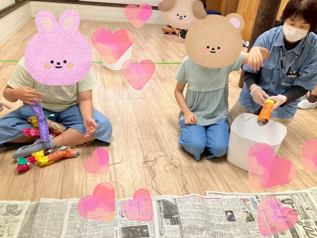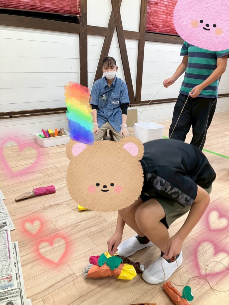 栗には外側にトゲがある事を学んでもらう為、画用紙で作ったトゲ(イガ)をつけました。