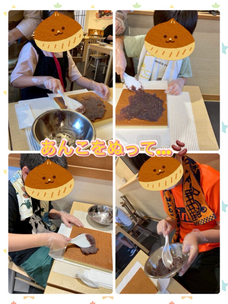 「あんこぬるのむずかしいー😣」とあんこを生地に塗ることに苦戦する様子もありましたが