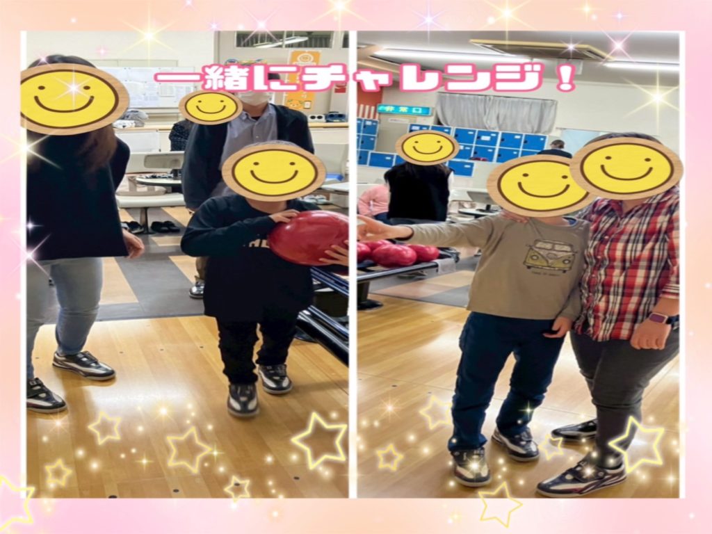 初めて親子でボウリングをしたご家族の方もおり、一緒に球を持ってレーンに向けて転がし笑顔になる我が子をみて嬉しそうに笑い合う姿に職員もほっこり☺️