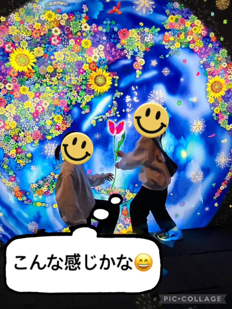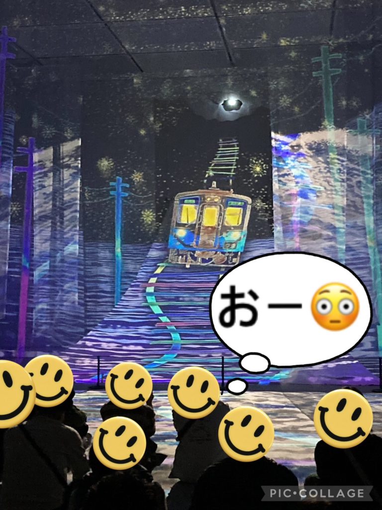カーテンに投影された絵や光の演出で万華鏡の中に入ったような体験をしたり、作品の中に入り込むように撮影をしたりして、絵と光の幻想的な作品を楽しみました🎵