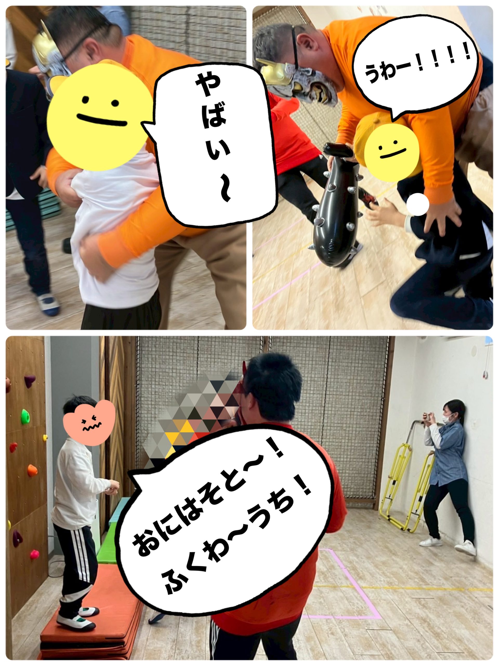 「キャーーーー!!!」とびっくりして逃げる姿も見られましたが、豆を投げて無事に鬼退治することができました👏