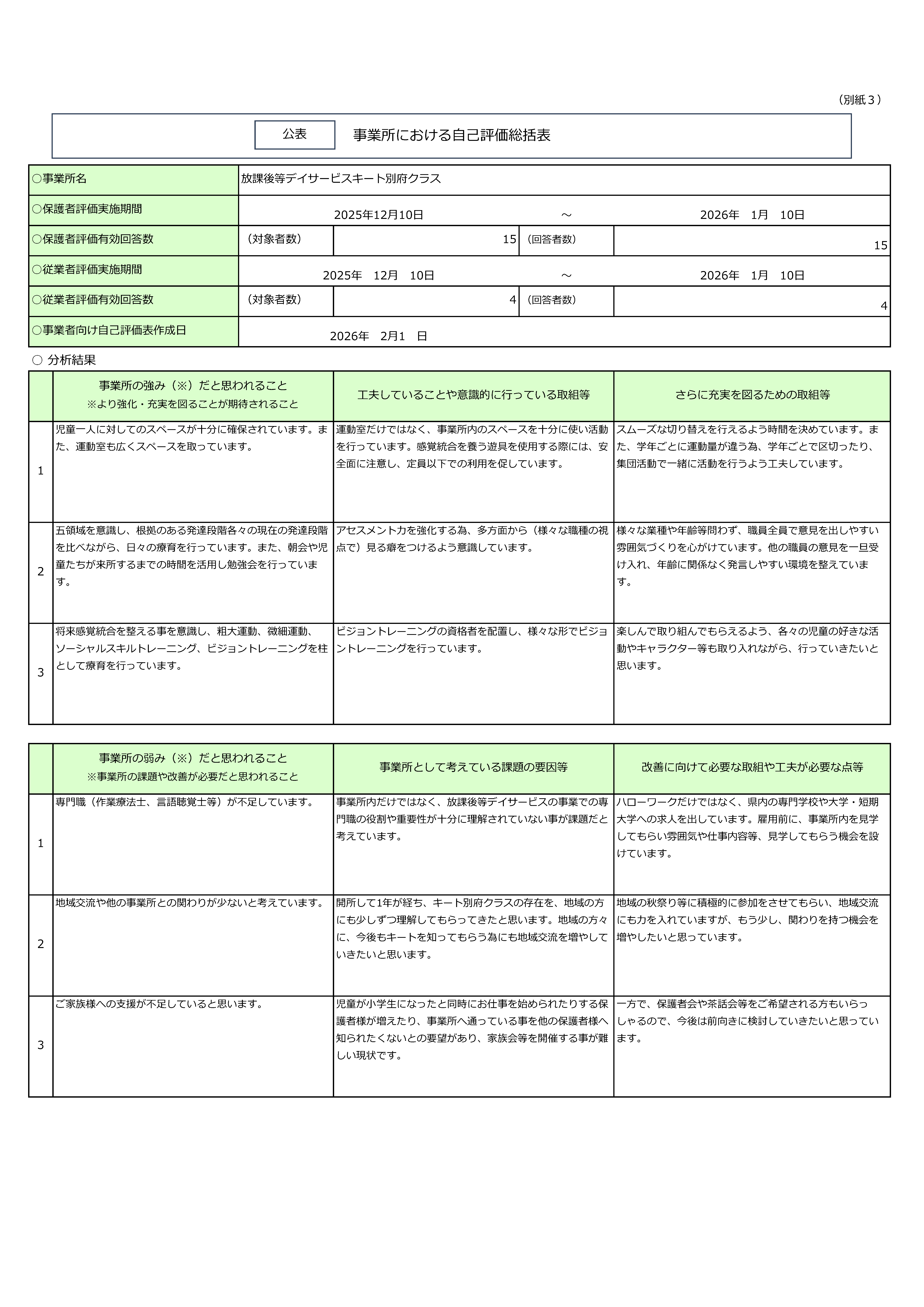 2026年 松山別府クラス 児童発達支援・放課後等デイサービス自己評価表【公表用】 お知らせ 2026.02.20 2026年松山別府クラス_児童発達支援・放課後等デイサービス自己評価表【公表用】.pdf