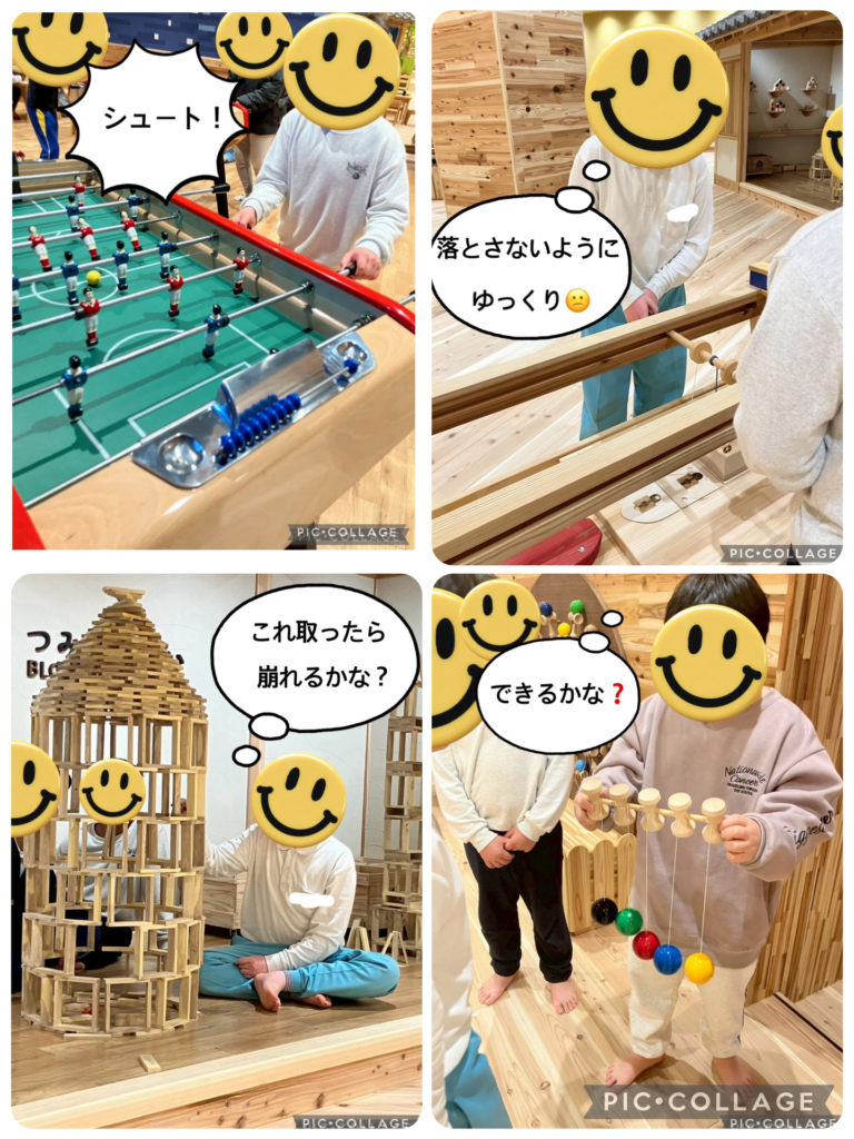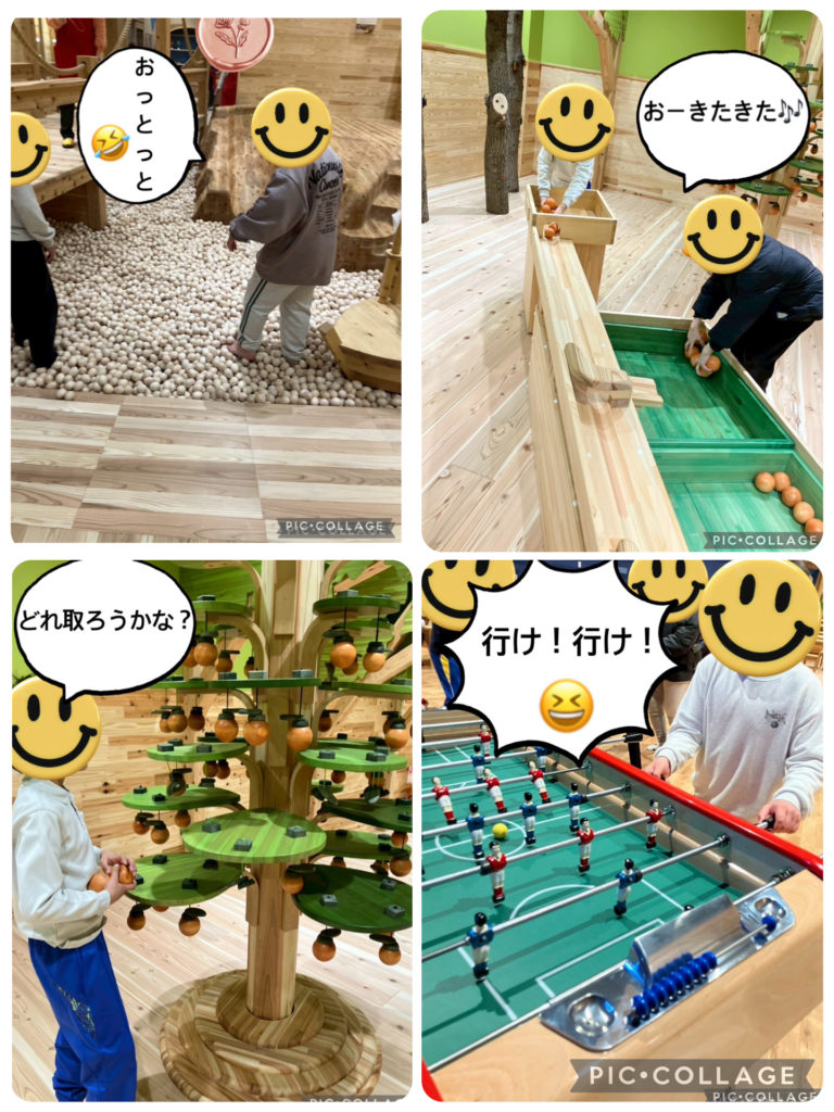 様々な木の知育玩具やテーブルサッカーもあり、こども達は好奇心旺盛に進んで遊んでいます‼️👍