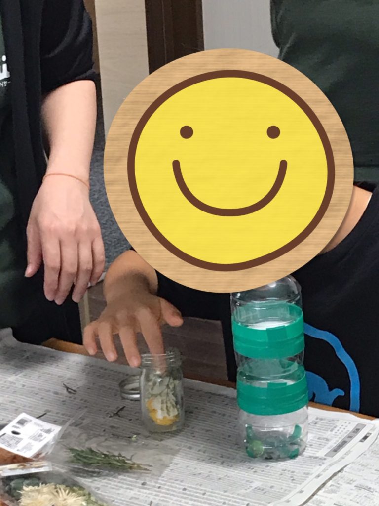 活動でもハーバリウム作りをお友達や職員と一緒に作ったり、外出の活動にもお友達と一緒に参加することもできています😄