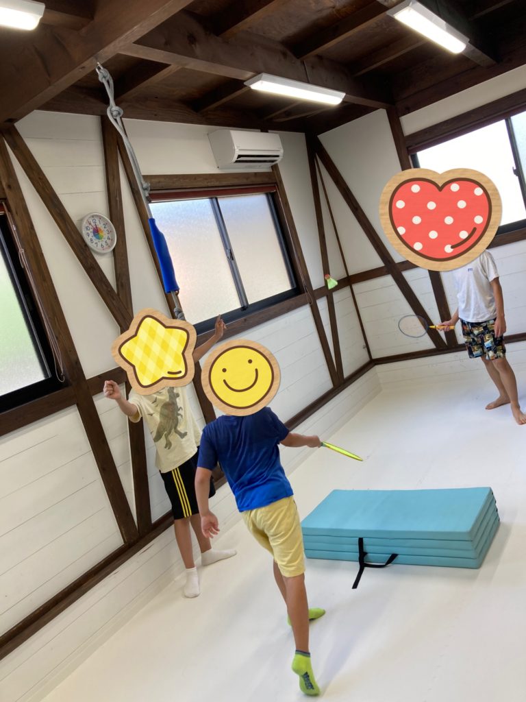バトミントンをしたことないという子もおり職員に羽の飛ばし方を聞きながら頑張りました😊