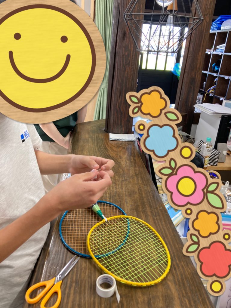 途中ラケットがガタガタと壊れかけるとテープを使って直そうとしてくれるお友達も・・・✨