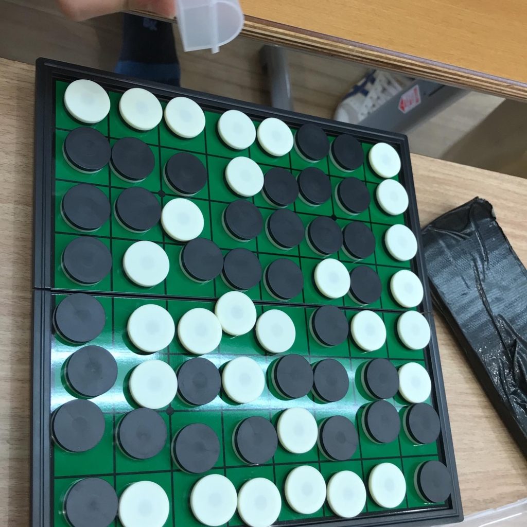 それぞれ石をケースにしまい、オセロ盤を箱にしまうところもお互いに声を掛け合って行ってくれました😆
