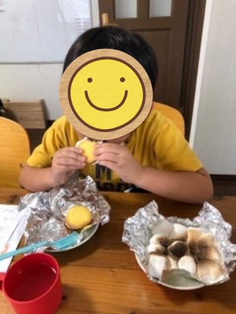 今日キートを利用してくれていた男の子から「お腹すいたなぁ、何か作る!?」と突然の提案。その時、すでに14時過ぎている・・・。他の児童も続々来所する時間。スタッフ考えました!「そうだ!マシュマロがある!クッキーもある!なんちゃってスモアが出来るじゃないか!」と言う事で準備をして作ってもらいました♪ マシュマロは焼き始めたらすぐ焦げるのでトースターの前でじっと監視♪ そのまま焼きマシュマロでも食べたようですがクッキーに挟んだスモアの方が気にいったようでした⭐︎ こどもの「やりたい!」と言う気持ちを大切にしたいと思っています♪