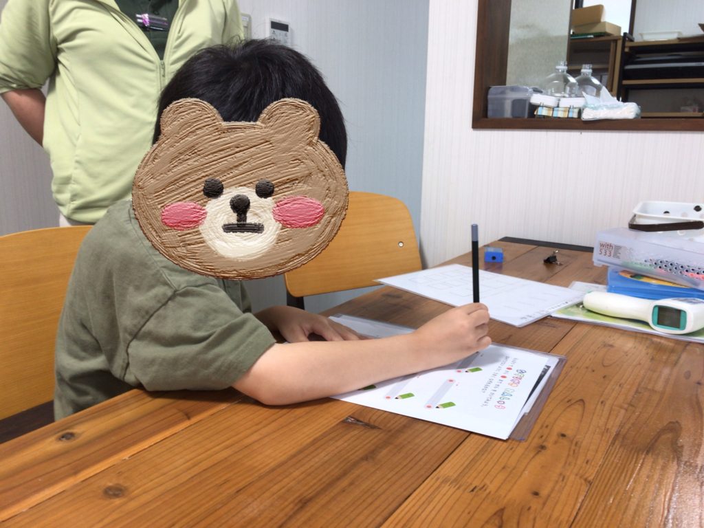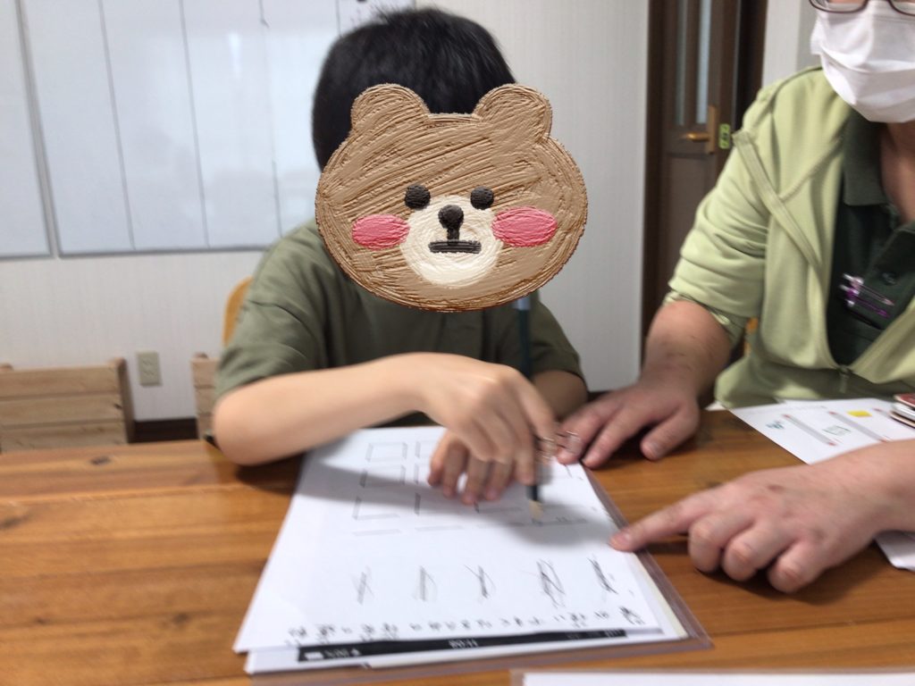 学習の時間に運筆の練習をしている児童が多くいます。