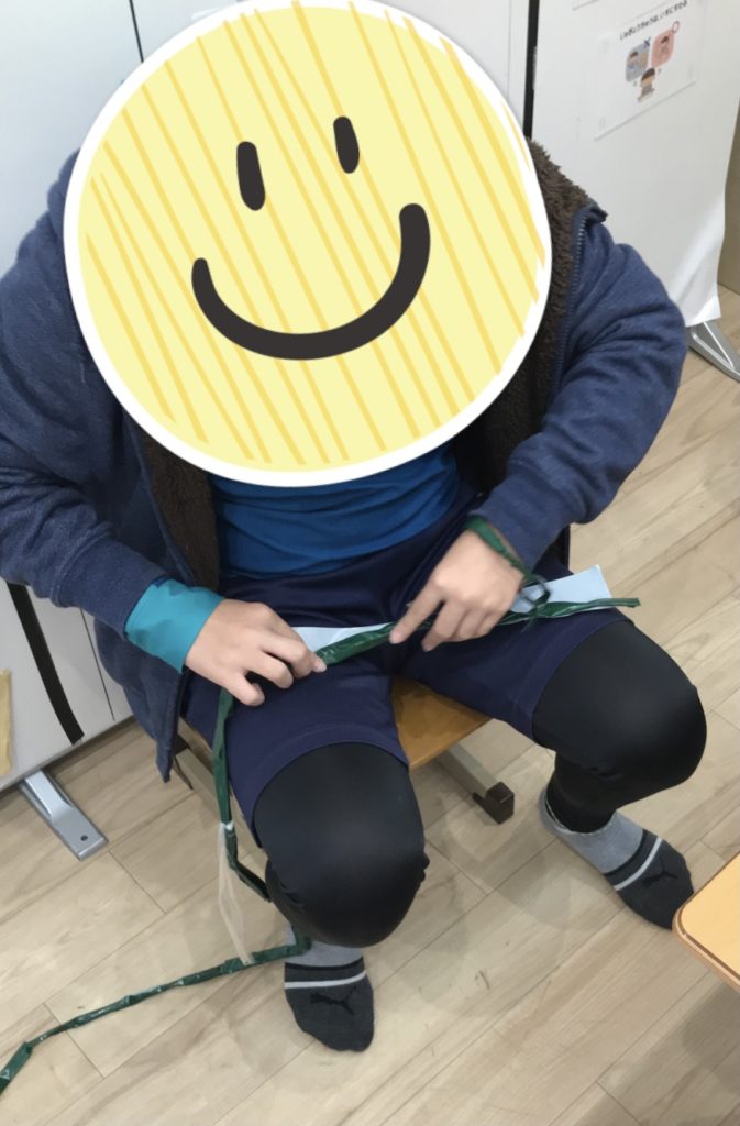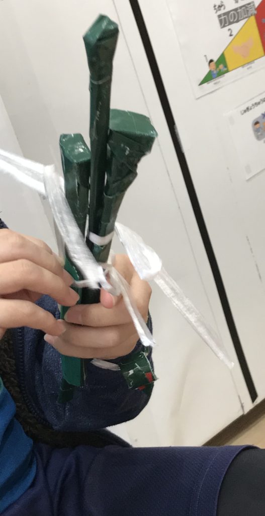 他にもビニール紐とカラーテープを使ってブレスレットやムチも作っていました。