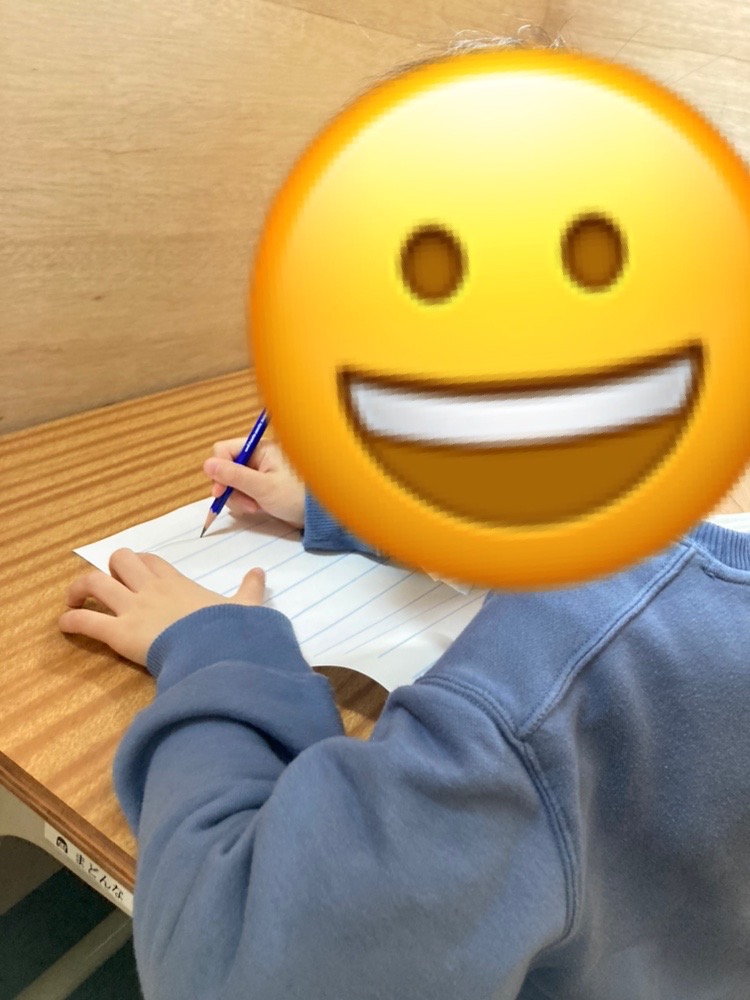 「上手に書けたね」と声をかけると、ニコッと振り向いてくれました。