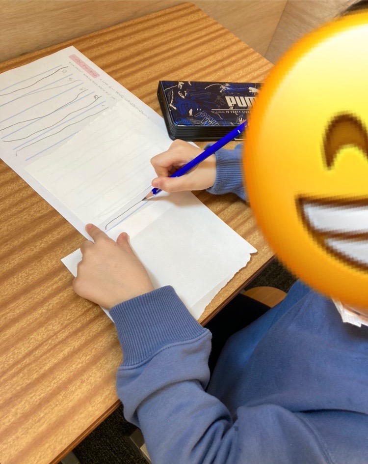 本日は線をなぞって、真っ直ぐな線、止め、などの練習をしました。