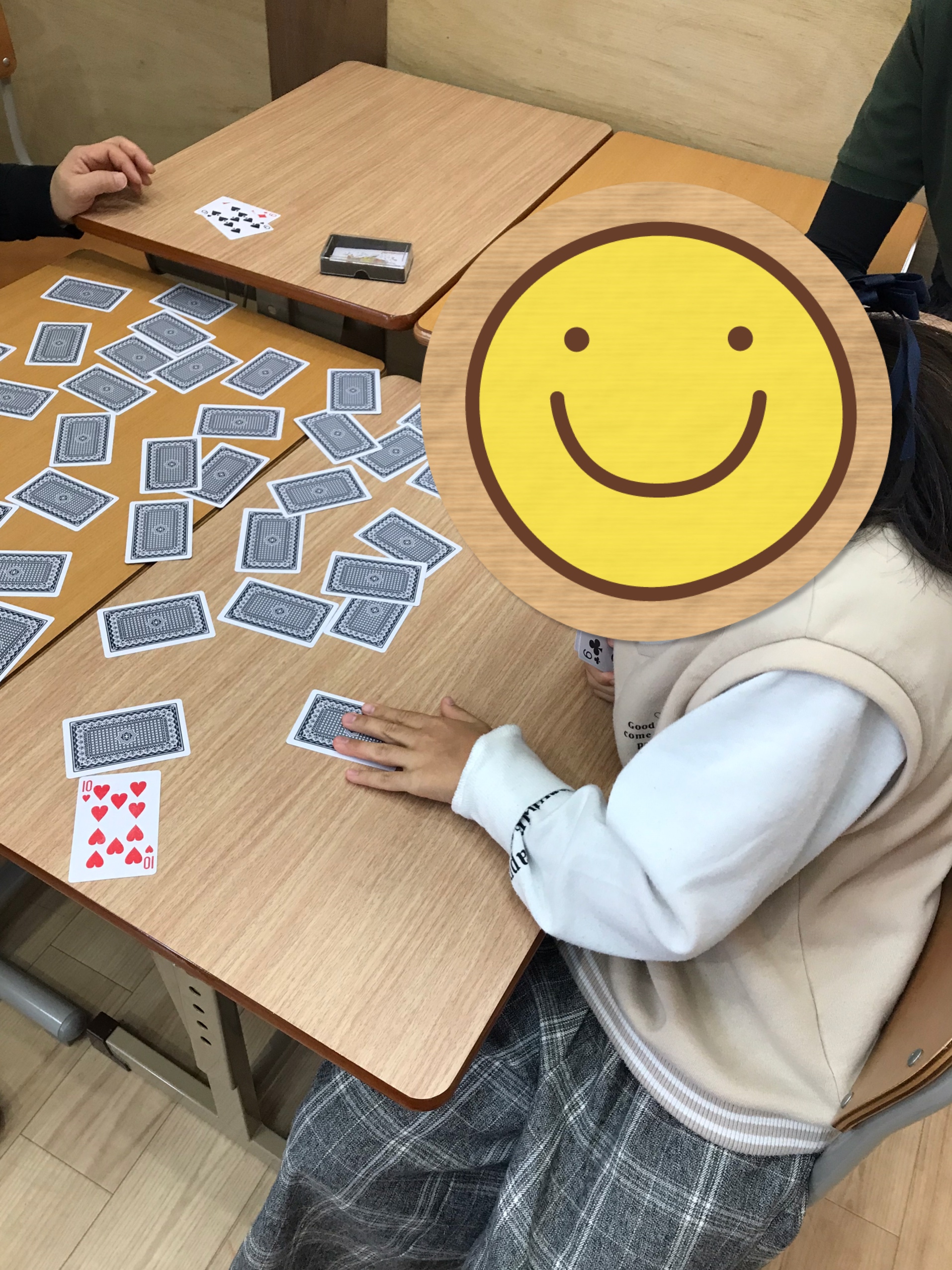 トランプが好きな児童と職員2人とで神経衰弱をしました。久しぶりの神経衰弱でカードを覚えておく自信がない職員は悪戦苦闘😭