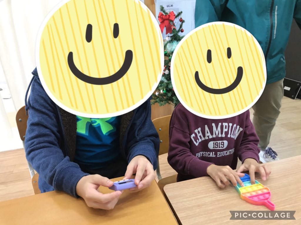 プッシュポップでタイムチャレンジをしました。いいタイムを出すにはスピードはもちろんですが、指先の正確さ、押す強さも重要になります!指一本を使うのか指3本使うかなど、どのような方法で押せば早いタイムが出るのかを考えながら、何度も何度も挑戦できていました!