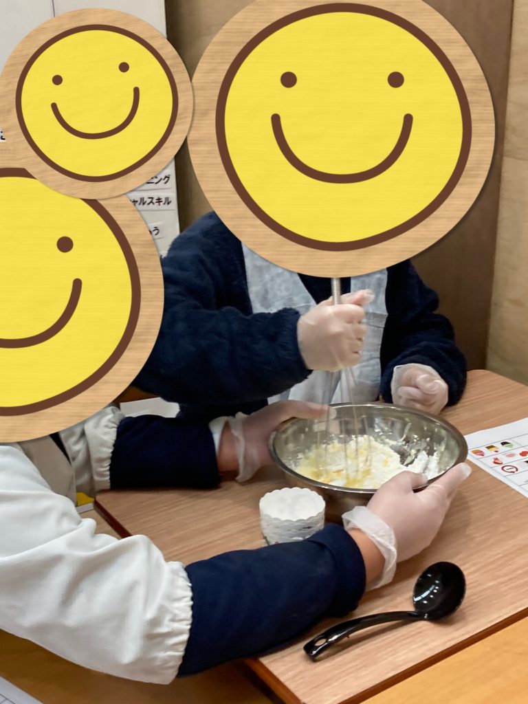 それぞれの個性が出たカップケーキが出来上がり、「お母さんのお土産にしよ」「はよ食べたいなぁ」と、達成感を味わう経験もできたようです。