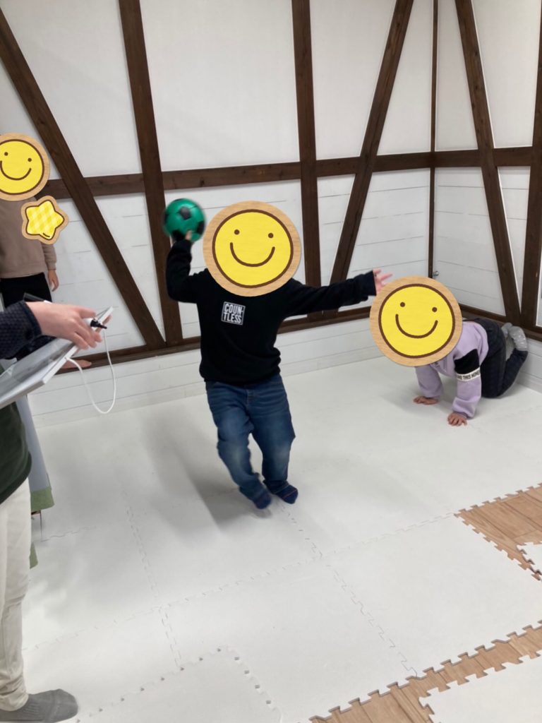職員も負けないように、頑張って投げたり・キャッチをしてみましたが、しっかりと職員を狙って、ボールを投げて職員を味方にする子どもたち…