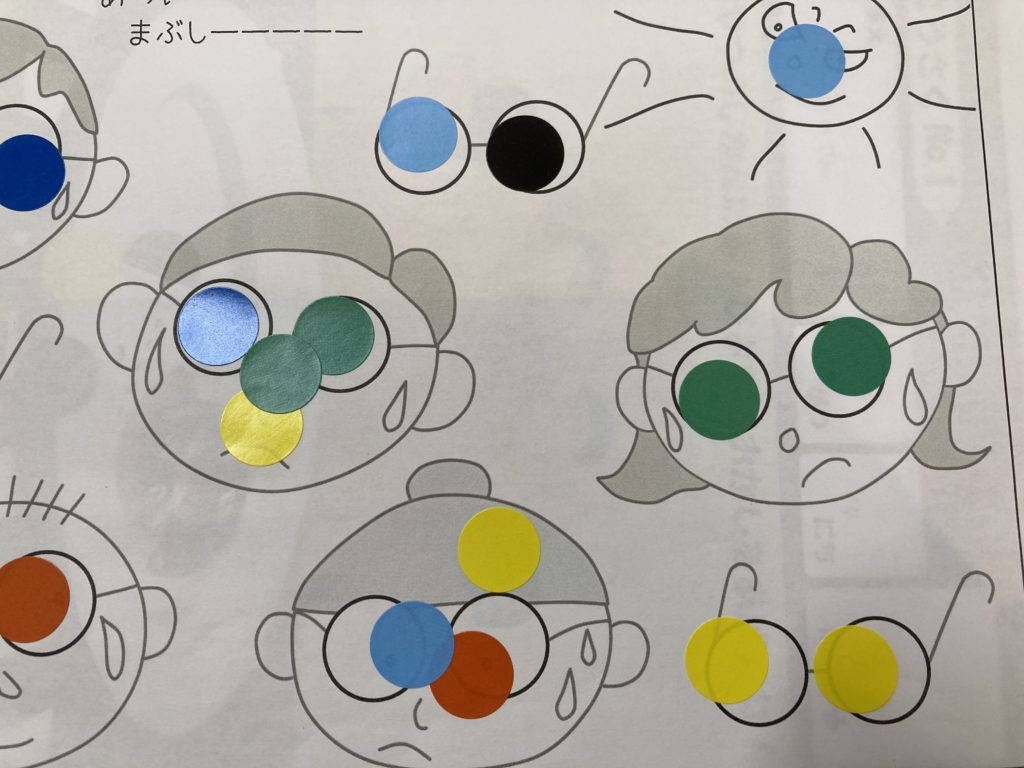 児童に指先を動かし集中力をつけてもらうため、シール貼り、貼り絵に取り組んでもらっています。本人も他の作業より楽しめる部分も多いようで、たくさんしてくれます。