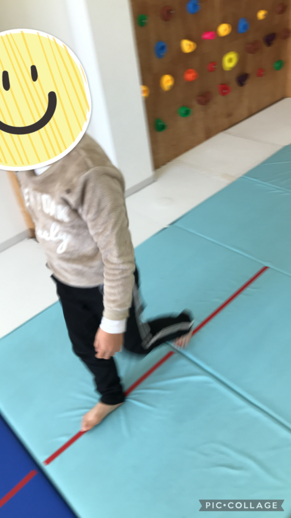 上手にバランスをとって歩けている児童、手でバランスをとると歩けている児童、つま先と踵をつけながら歩くのは難しいけれど、頑張って線の上を歩こうとしてくれている児童、様々な児童がいました😆