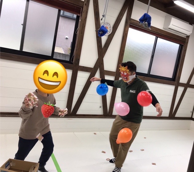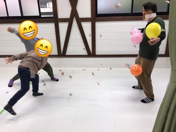 最後は子どもたち全員で「紙風船」を持った鬼の退治をしました。