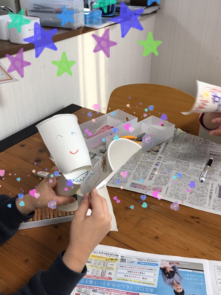 【松山南クラス】本日のできごと本日は紙コップを使った工作をみんなで作りました。