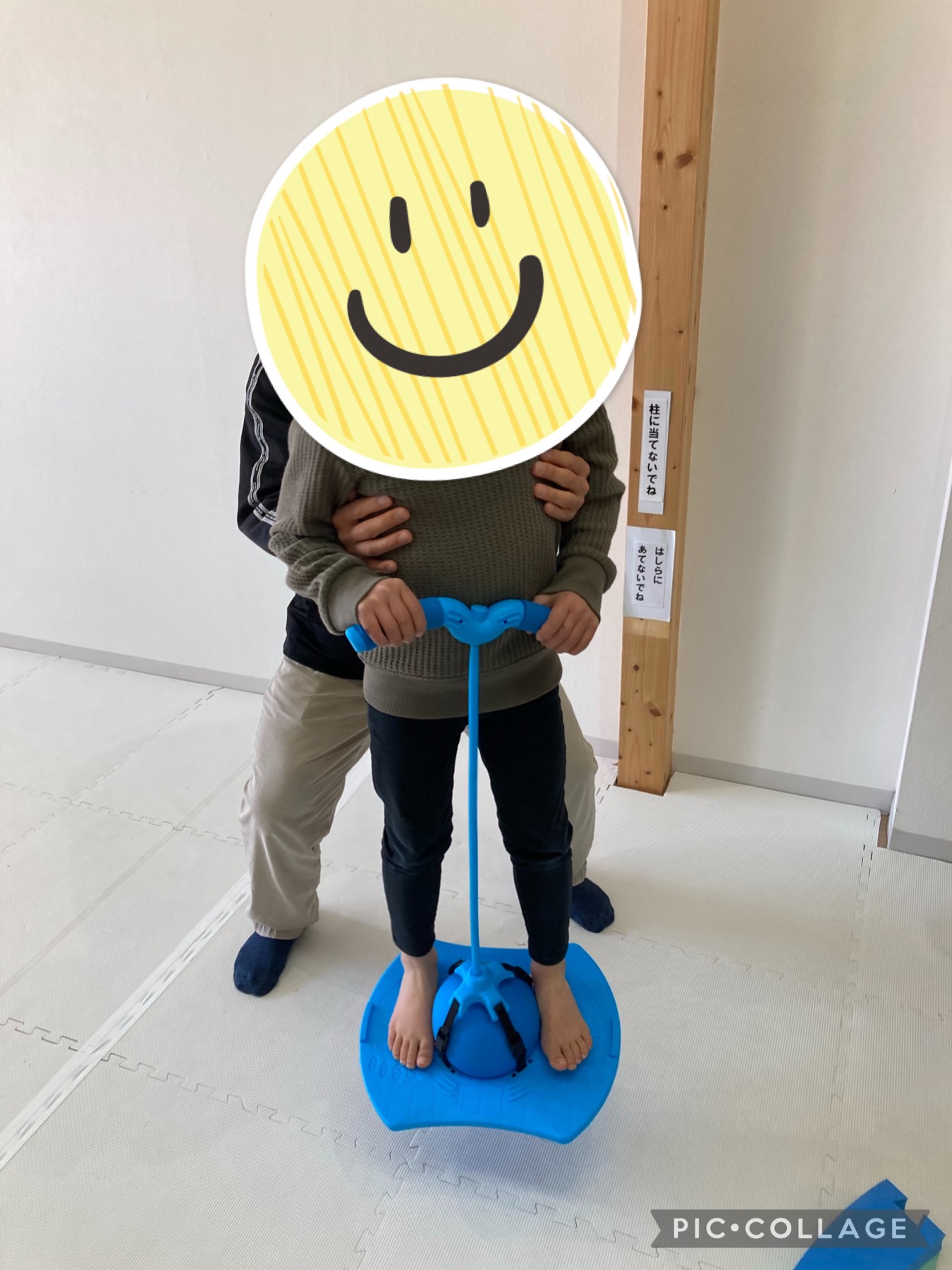 ジャンピングボール 【今治北クラス】本日のできごと 2022.02.25 ジャンピングボールに挑戦しました!ボードに乗ってバランスがとりやすいように、最初は平均台のブロックを使って安定をさせつつボードに乗っています! 乗った後はバランスを保つのが難しい為、職員の補助にてジャンプをしています!職員と一緒にタイミングをとりながら、楽しくジャンプをして体幹トレーニングが出来ました!しっかりとジャンプが出来ていたので、補助なしでジャンプが出来る日が近そうです!