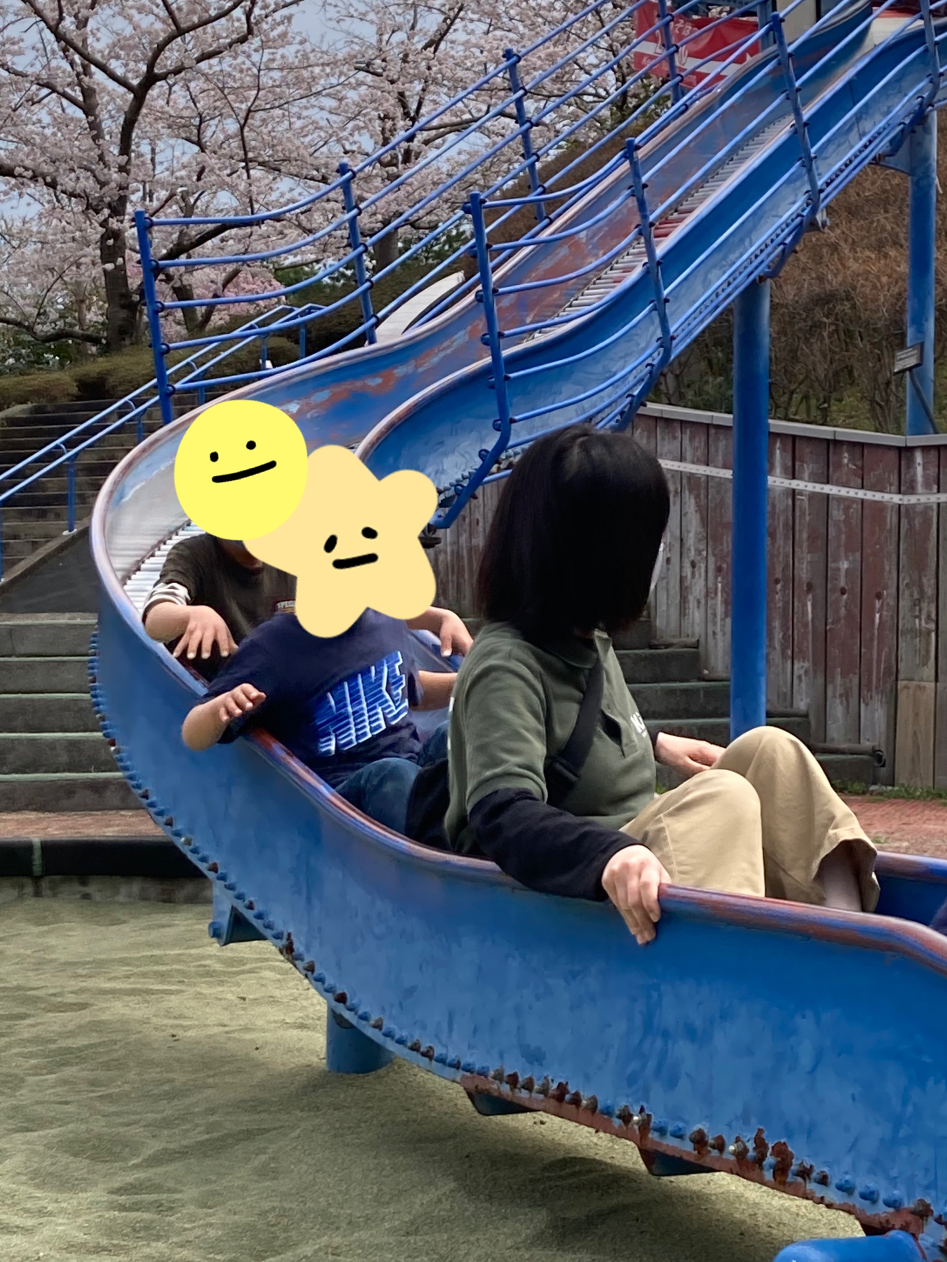 夏のように少し暑かったですが、こどもたちは、ニコニコしながら、桜の中を、自由に走っていました。