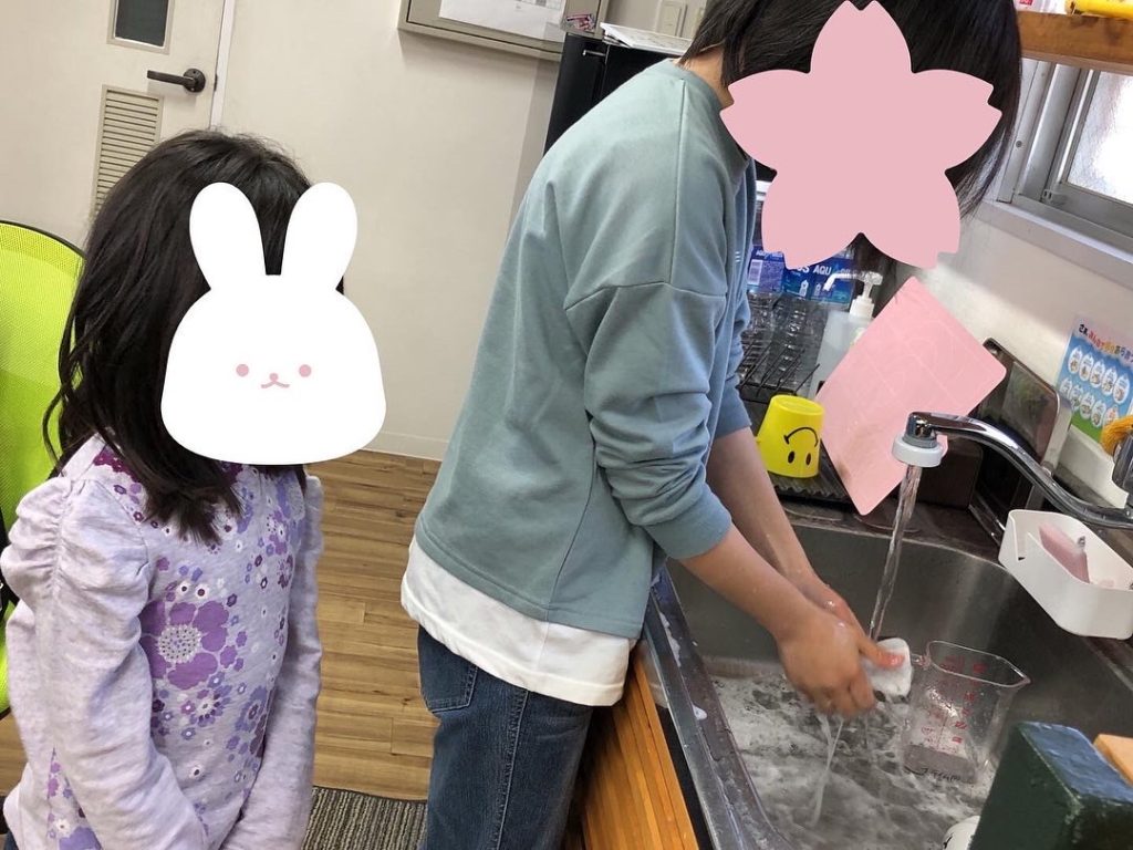 絵の具を使うとカラフルなスライムができます🌈✨他の児童も「スライム作りがやりたい」と言うと、最初にスライムを作っていた児童が「私が教えてあげるね。」と優しく作り方を教えてあげていたり、一緒に使った物を洗っていました😌✨思いやりや協力し合う環境作りを大切にしていきたいです😌