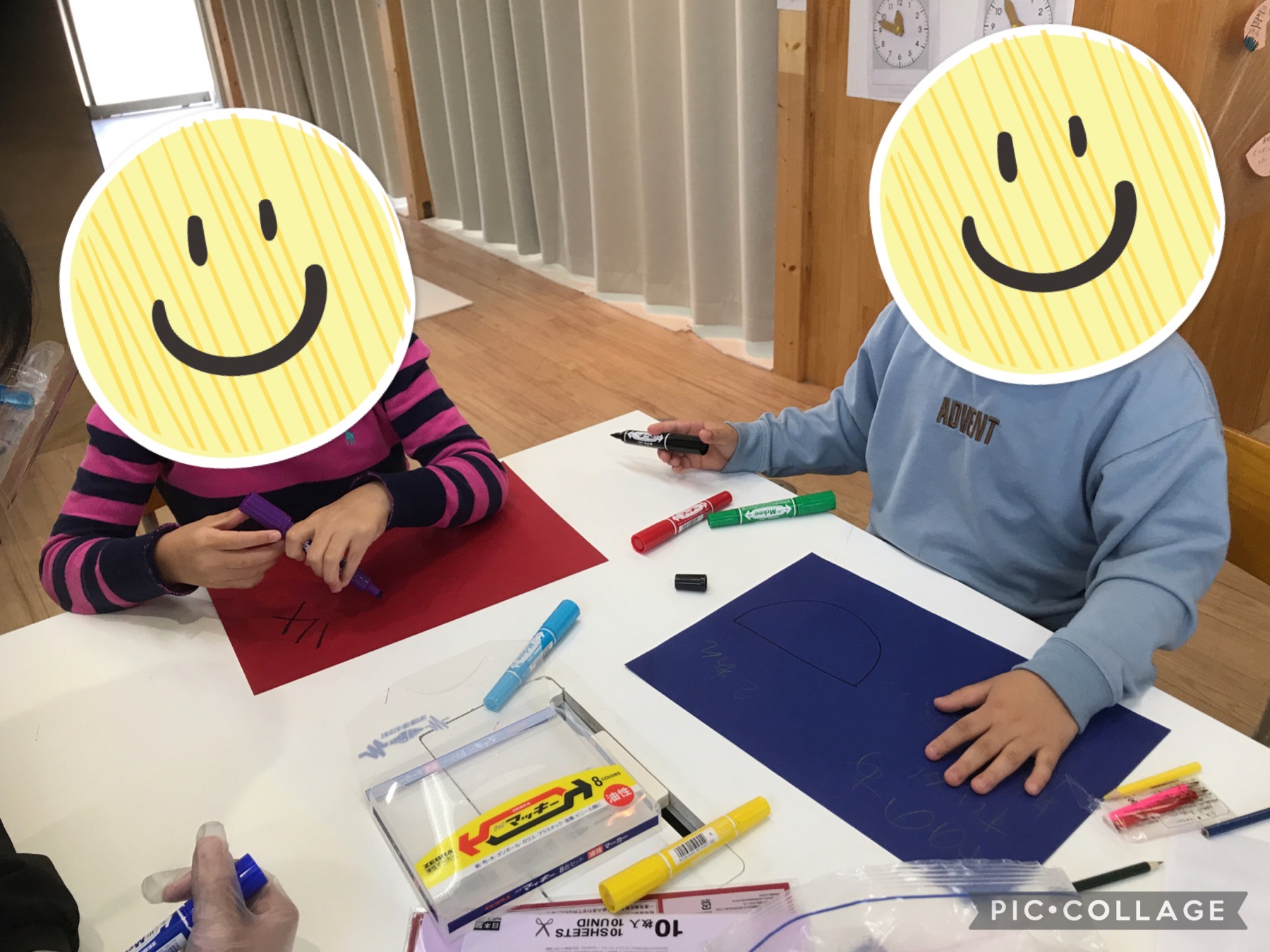 新年度なのでみんなで自己紹介カードを作りました!好きな色の画用紙に、名前、学年、生年月日、好きな食べ物、好きなことなど自由に書いていきます!好きな食べ物の絵を書いたり、似顔絵を描いたりとそれぞれが楽しく工夫しながら書けました!書いた後は順番に発表していきました!恥ずかしくてカードで顔を隠しながらも自分の口で好きなものなどを発表できています!また話すのが恥ずかしい児童には職員と一緒に発表したりして楽しく発表できました!お互いを知ることで共通の話題ができ、その後はみんなで楽しく会話ができました!