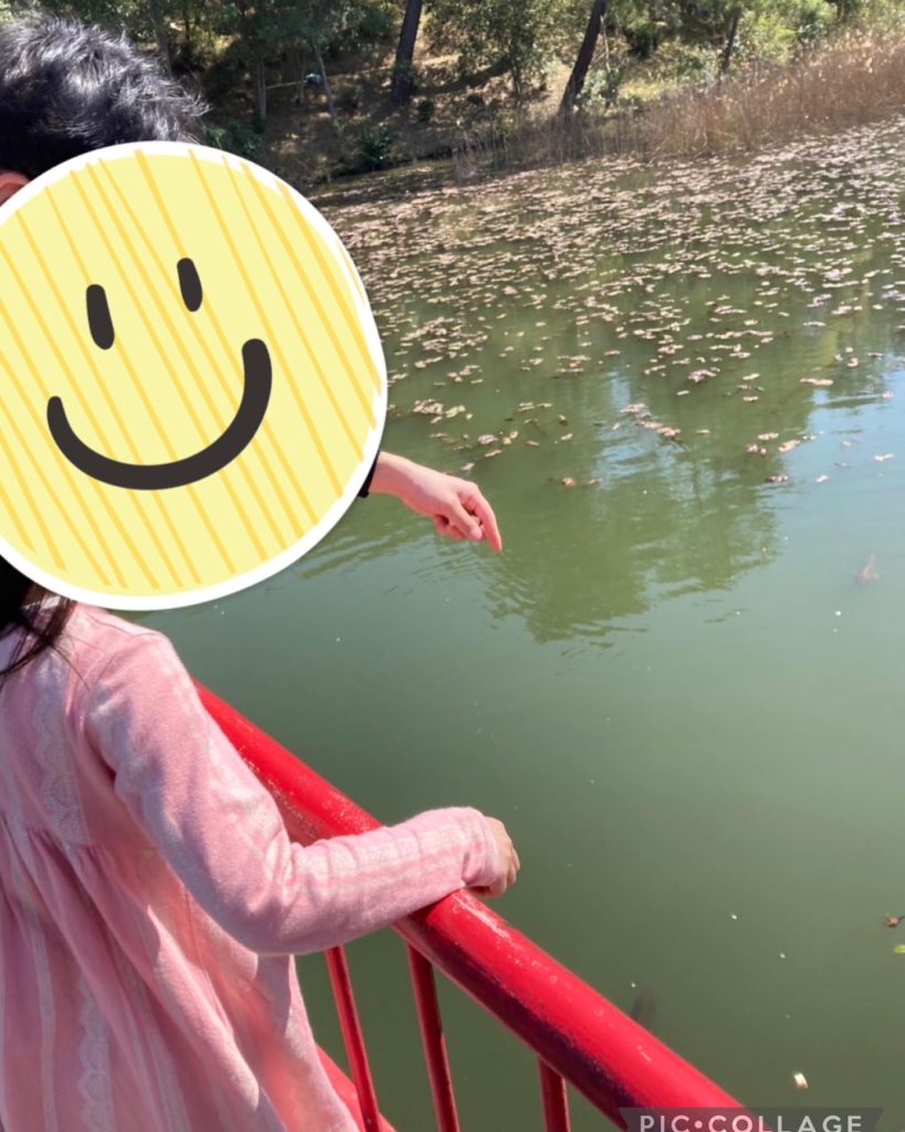 初めに一人ひとりに餌のお麩を配っていると、先に餌をもらった児童が「先生もう行っていい?」と、早く餌やりをしたい気持ちが前に出ていました。(先に行ってしまわずに職員に確認をとったところは👍ですね😊)