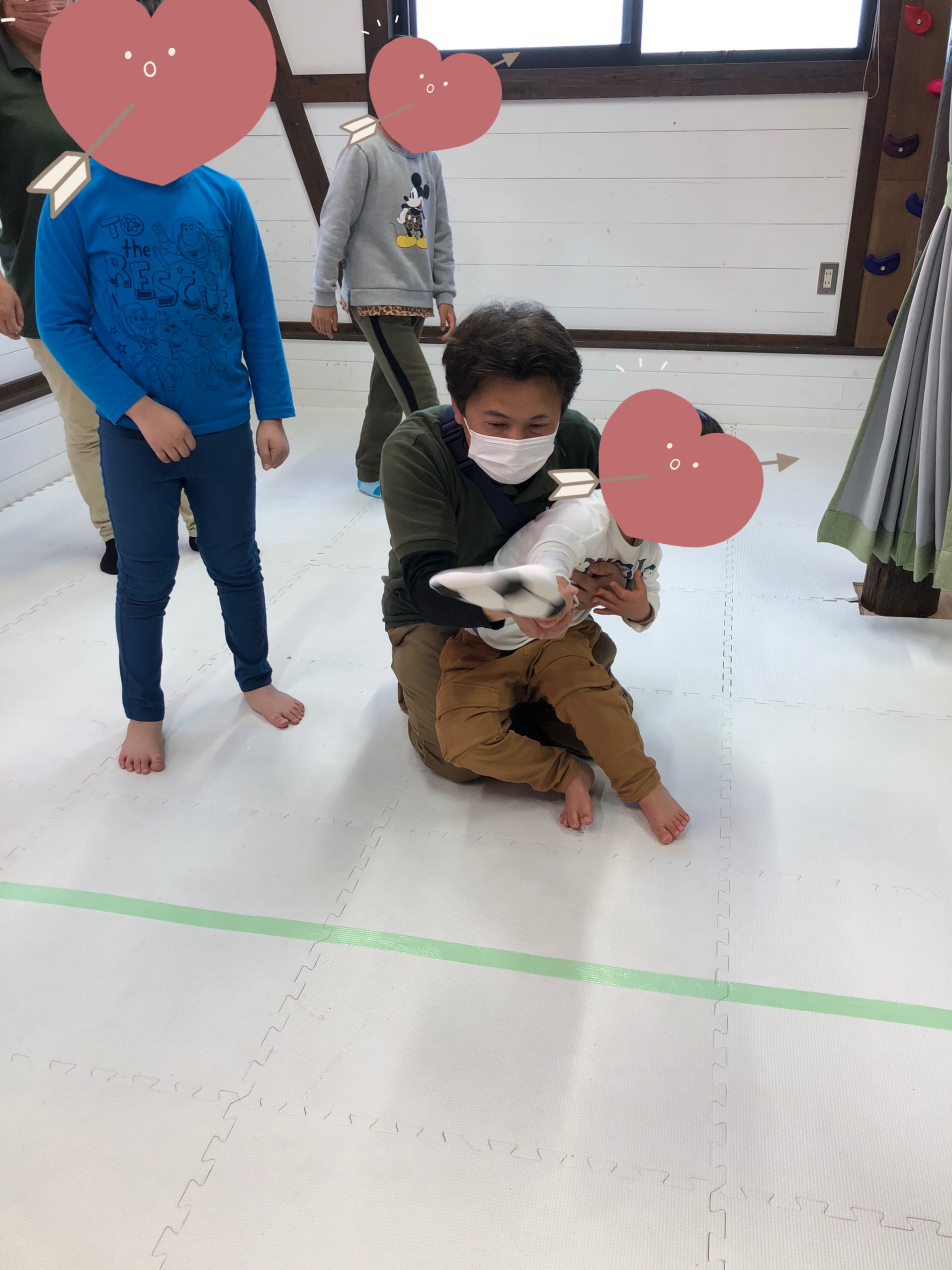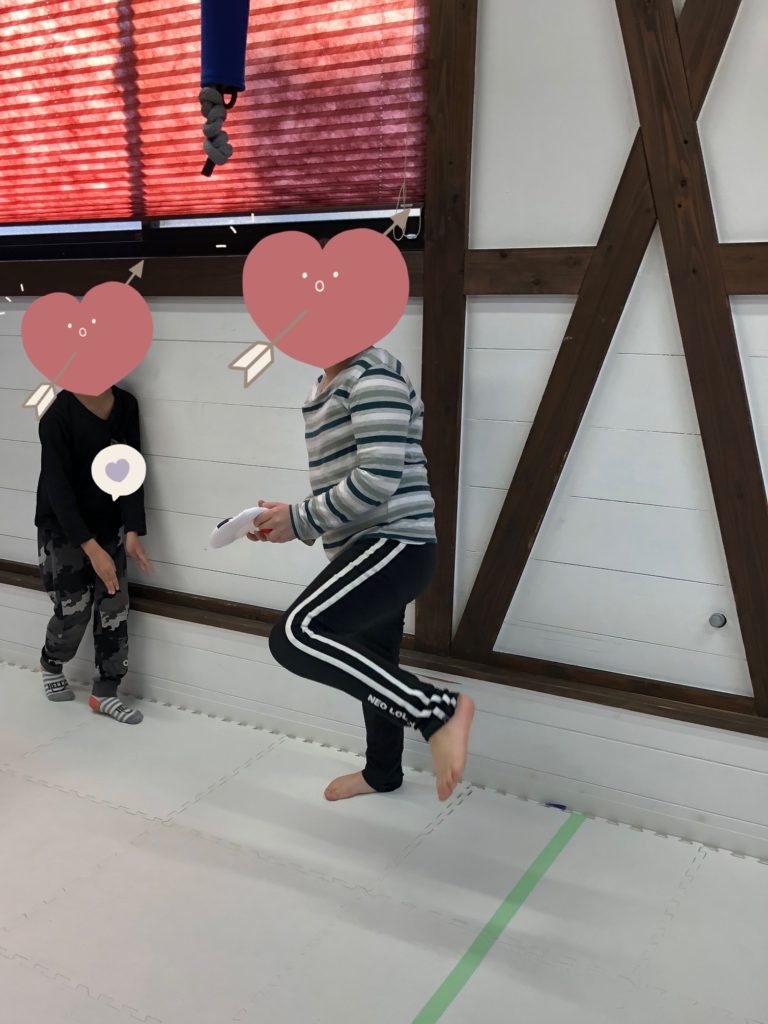 「順番ね」と声を掛けると、まだ投げてない友達にフリスビーを譲ってあげるなど、みんなで楽しく活動することが出来ました。