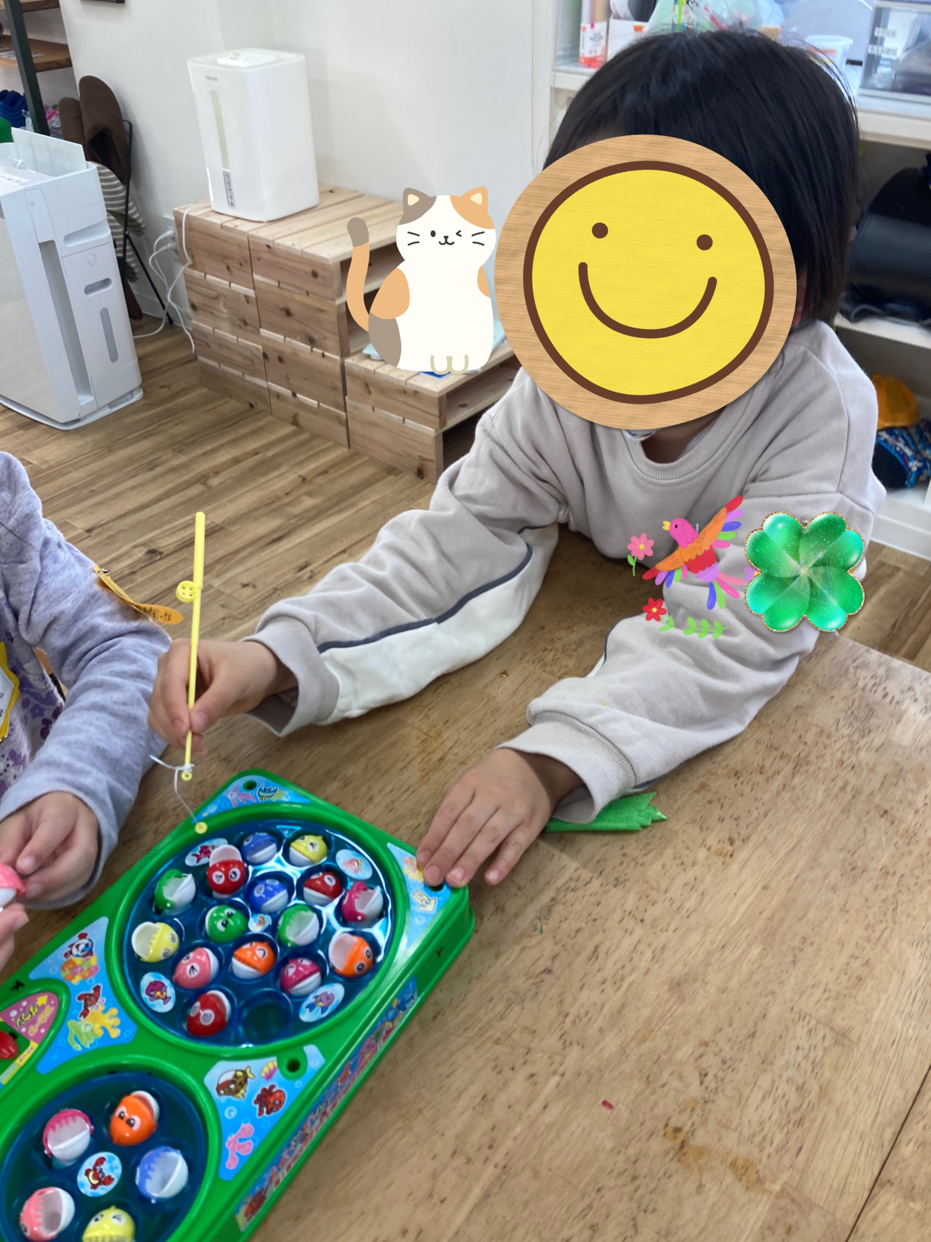 私が小さい頃からあった玩具が手に入りました!見た事ある、やった事ある人も多いんじゃないでしょうか? 電池で動く魚釣りの玩具です😁 これ、簡単なようで意外と難しく気がつくと夢中になってしまいます♪上手に魚を釣り上げるには魚の動きを見極め、タイミングよく魚の口に糸を垂らし、魚が口を閉じた良いところで釣り上げる、というようにいくつかの工程が必要となります。 夢中で取り組む中でビジョントレーニング、微細運動、集中力アップなど色々な事に役立ちます!お友達と一緒にすれば自然にSSTもできる! 昔自分が遊んでいた玩具にこんな良いところがあるなんて! 何事も無駄じゃない! ちなみに私もこども達と一緒に夢中になった一人です😁