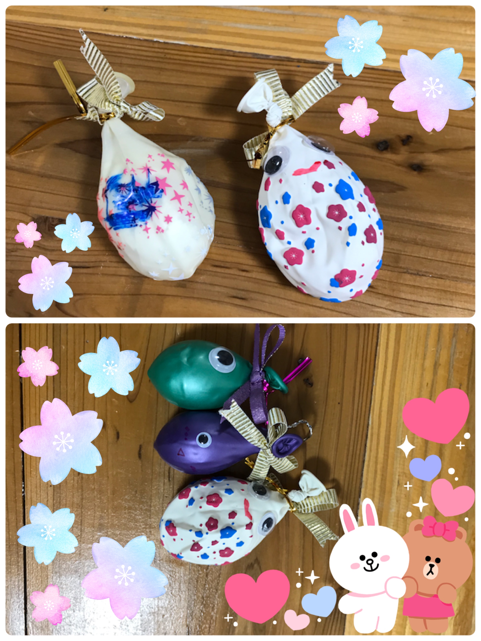 風船の口を縛ったら、カラーペンや目玉、リボンなどをつけてデコレーション🎀
