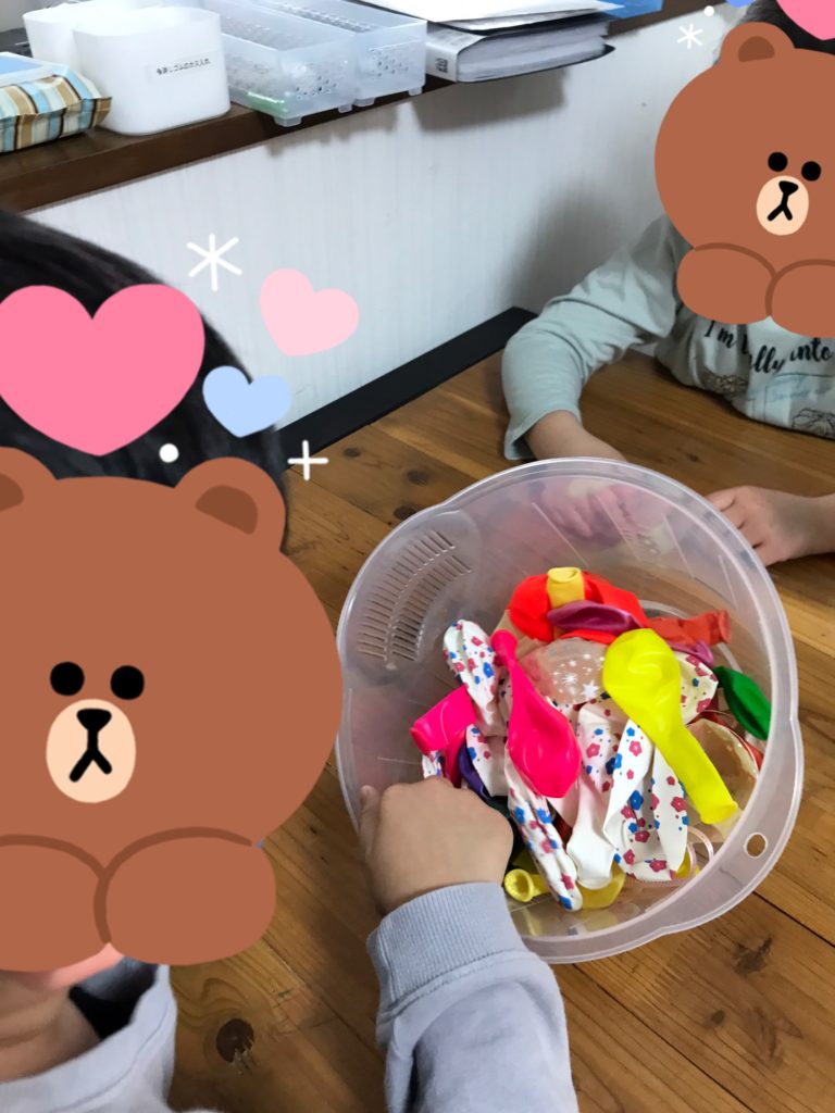 今日は、風船と片栗粉を使って簡易式のスクイーズをみんなで手作りしました✨