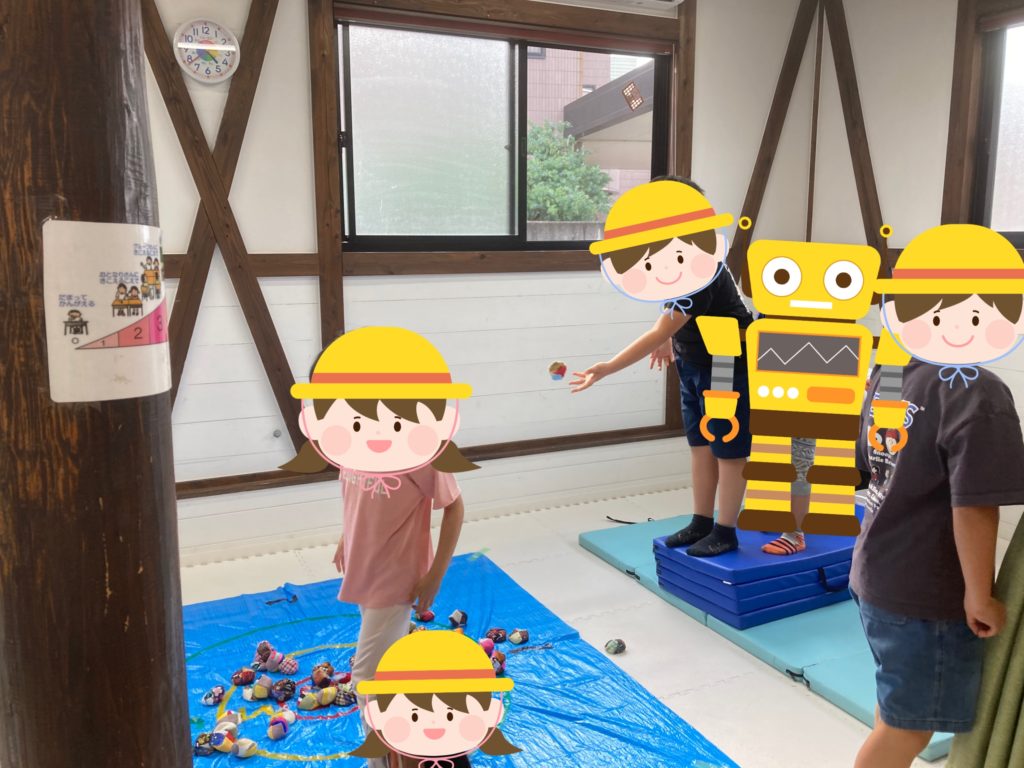 今日は「お手玉投げゲーム」をしました。