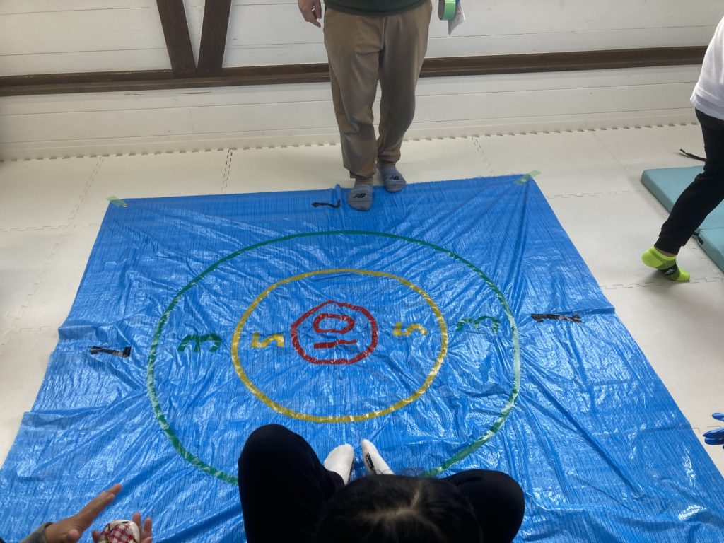 一度仕切り直しをし、もう一度ルールの説明をして、お手玉は職員がひとつずつ渡すことにしました。