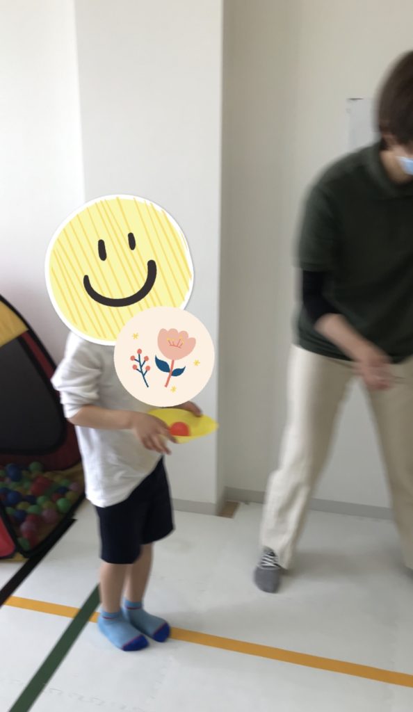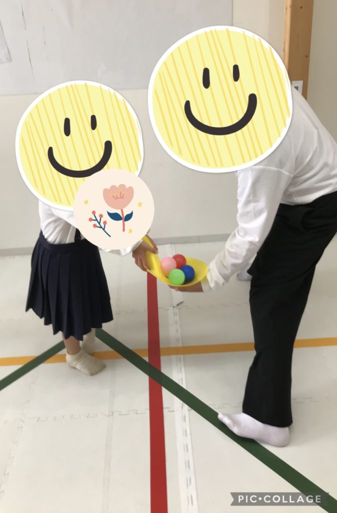 4回目は受け皿をボールに入れ後ろの児童にボールを送っています。その後は受け皿の中のボールを徐々に増やしながらしています♪