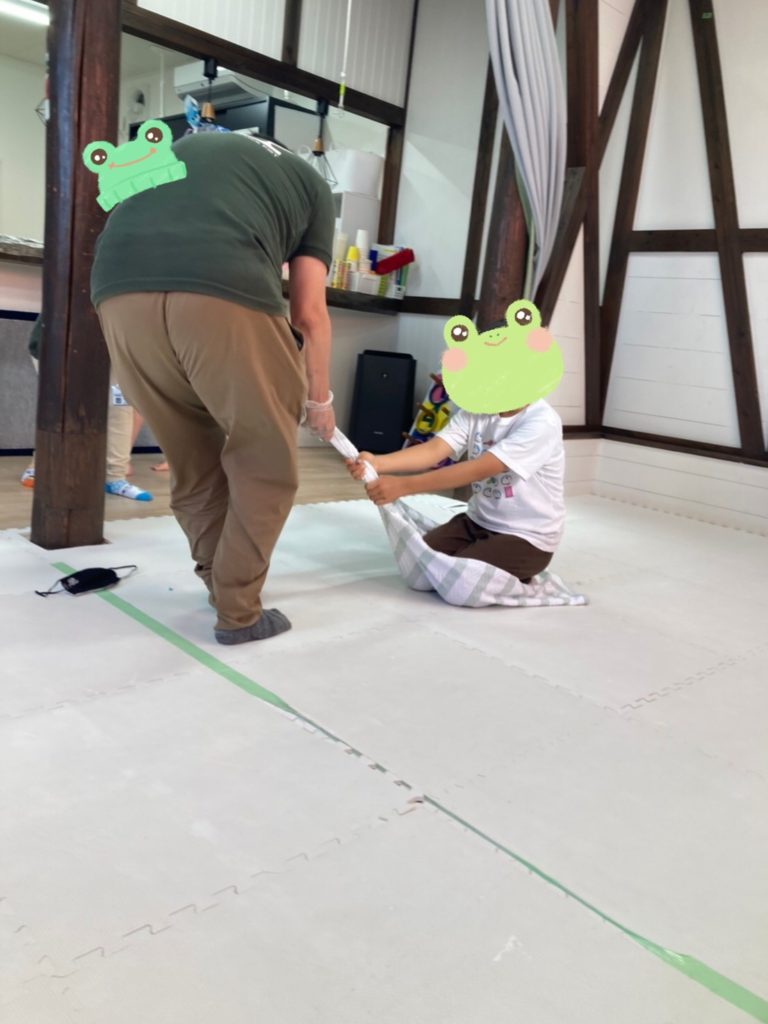 今日は魔法の絨毯みたいに、児童たちにタオルに乗ってもらって、職員がお運びしました^ – ^