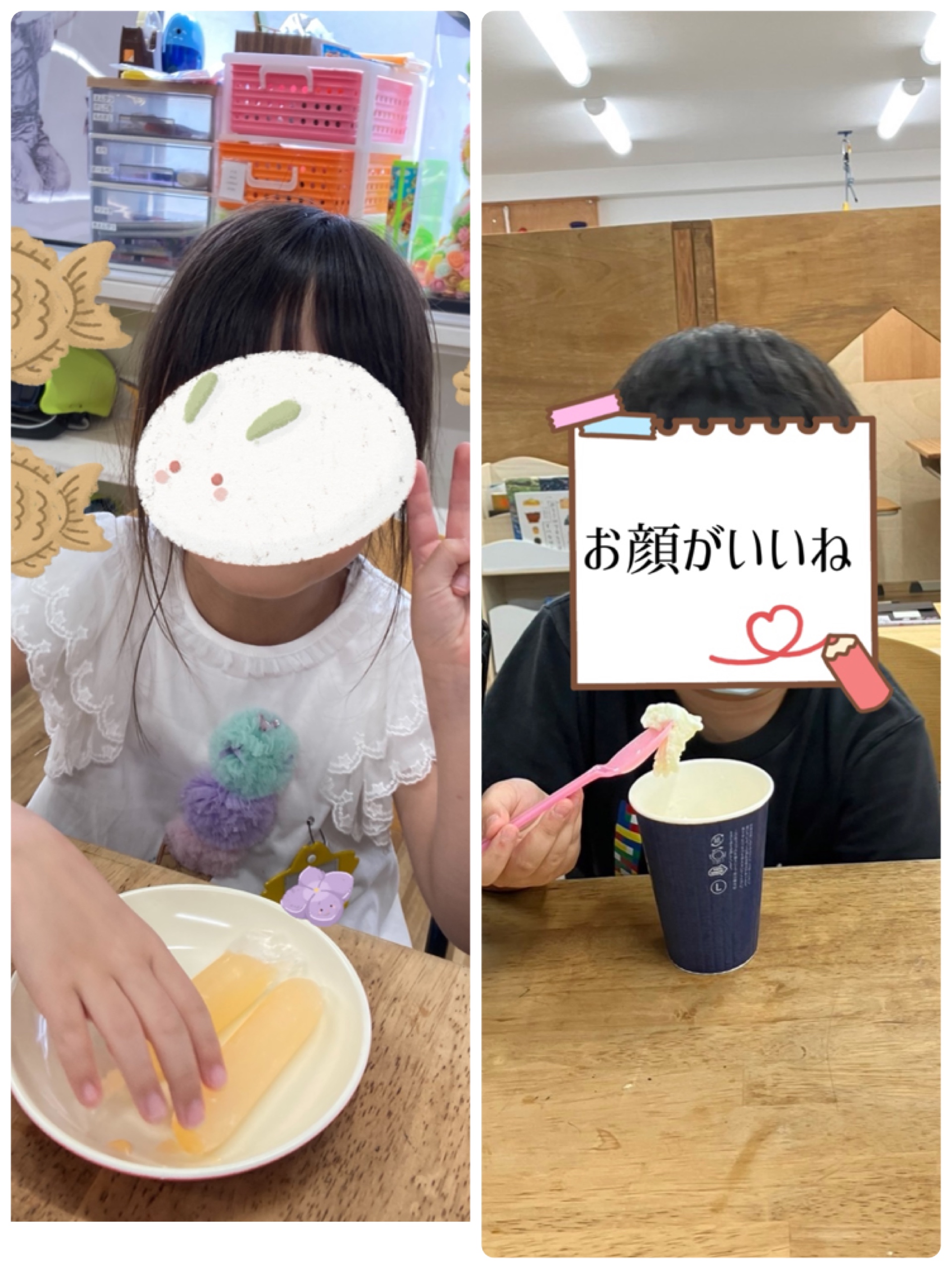 通常のおやつも準備していますがさらにポッキンアイスとアイスクリームも準備しておやつの時間に何を食べたいか自分達で選んでもらっています☺️