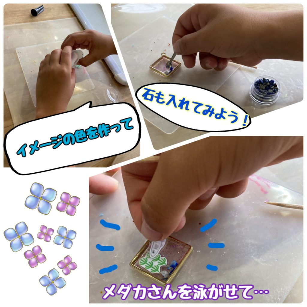 レジンを使って、メダカのキーホルダーを作ってみました🐟🌱