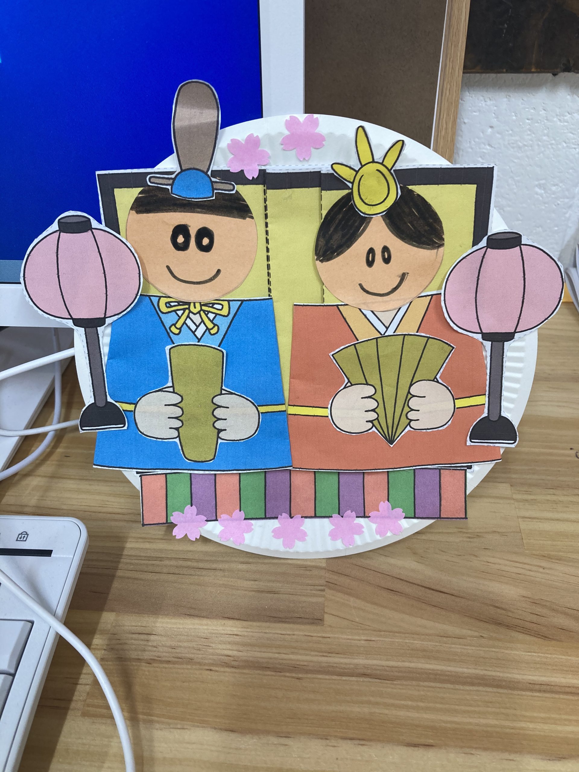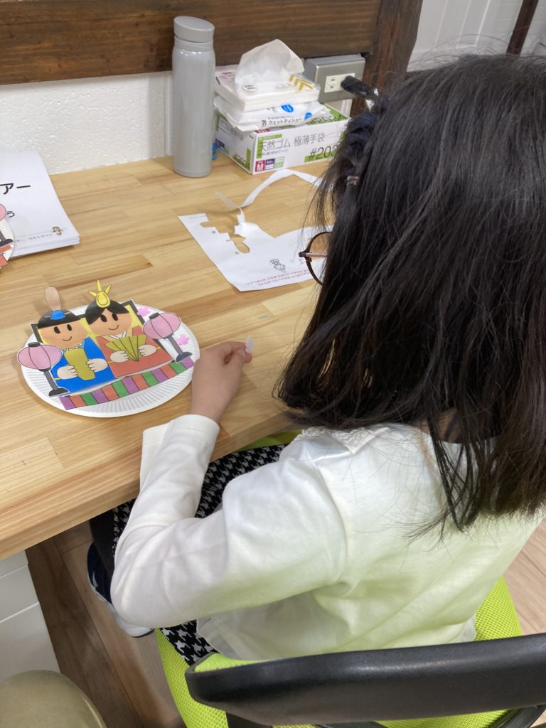 3月はお雛様と言う事で工作で雛飾りを作りました♪可愛い雛飾りの完成です♪♪♪