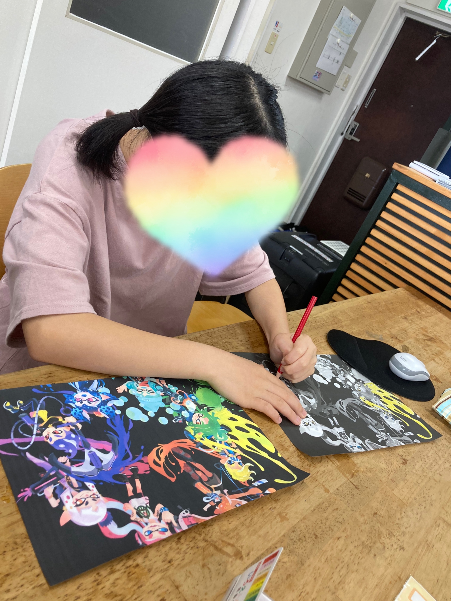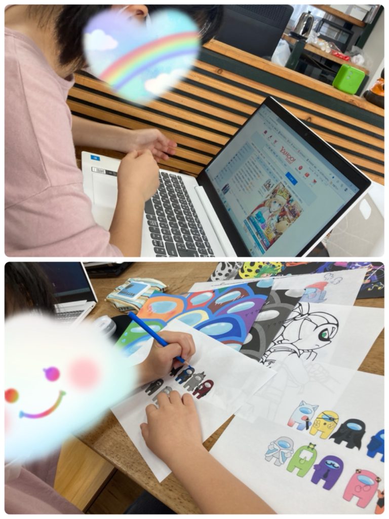 普段から職員に声をかけてPCで自分が塗りたい画像を探して、デスクトップに保存をして、印刷をするという流れを自分で行っています。
