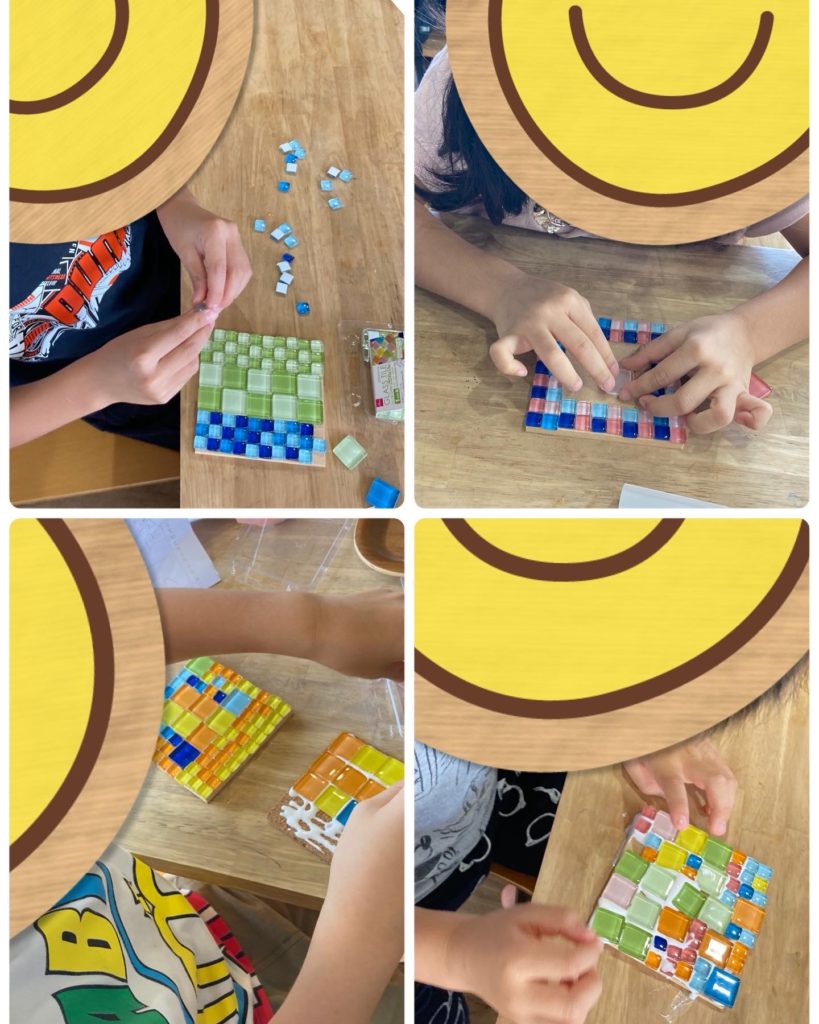 中には、タイルの上にもう一段タイルを重ねる子や、完成したコースターの裏側にまで、タイルを貼ろうとする子まで‼️👀😆