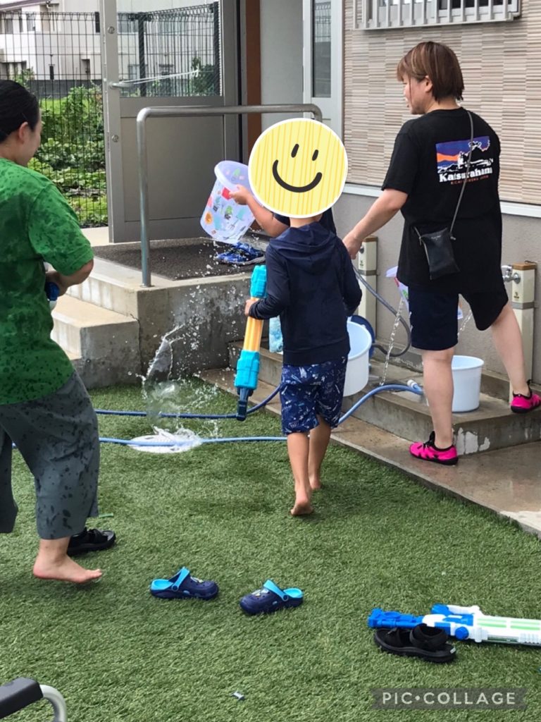 水鉄砲を貸し借りすること、プールの準備をすることで、様々な経験をし、お友達と協力することや、順番で水鉄砲を貸し借りしたりと、ソーシャルスキルを自然に学ぶことが出来ていました。