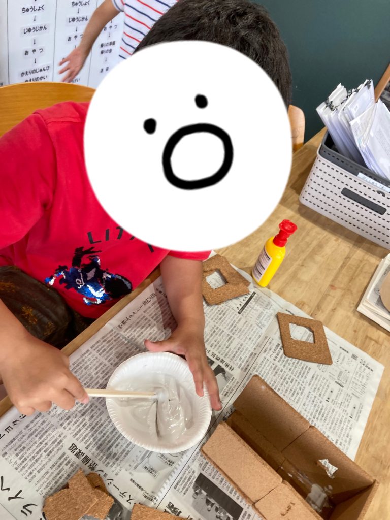 職員はタイルコースター作りをイメージして材料を用意したのですが、こどもたちにとってはそのどれもが珍しいアイテムのように感じてくれたようです😊🙌