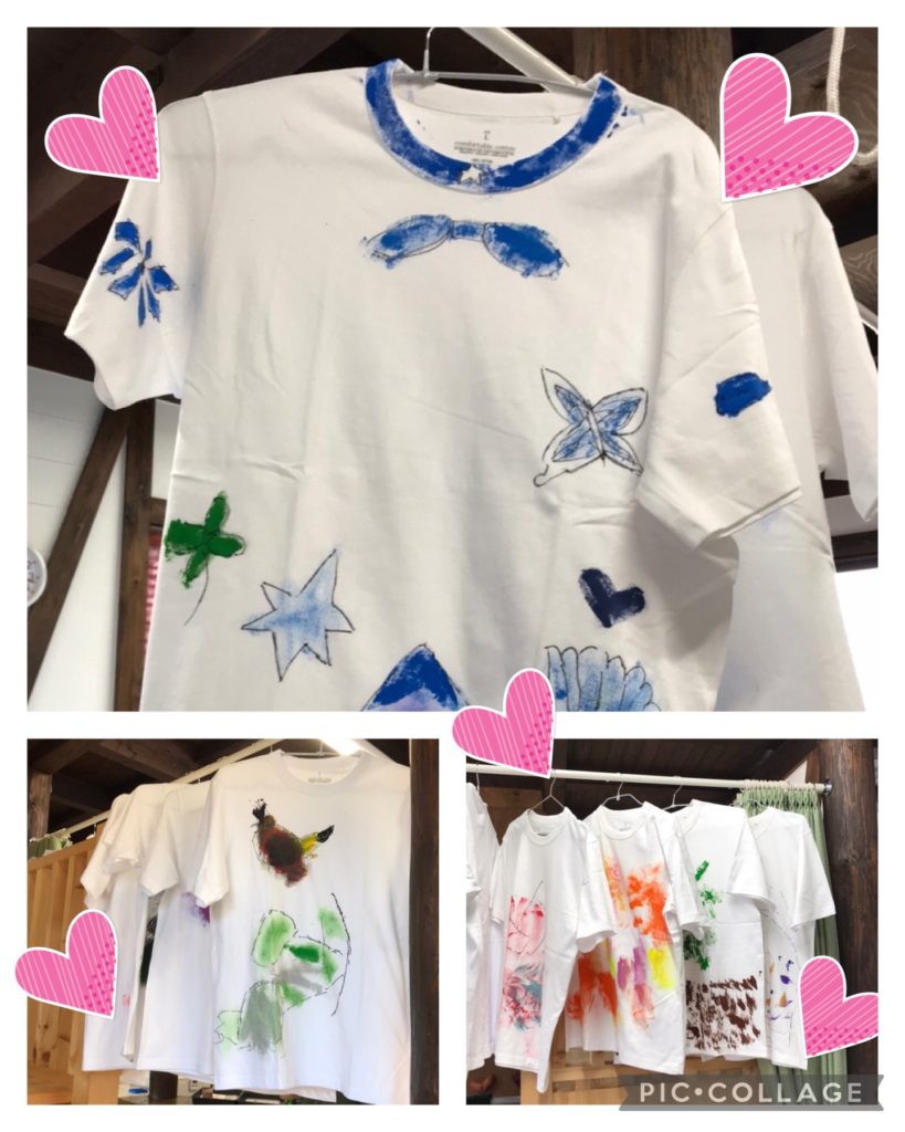 です。真っ白なTシャツに自分が思い描く絵を描いてもらい、それぞれ好きな色で、作品を作りました✨