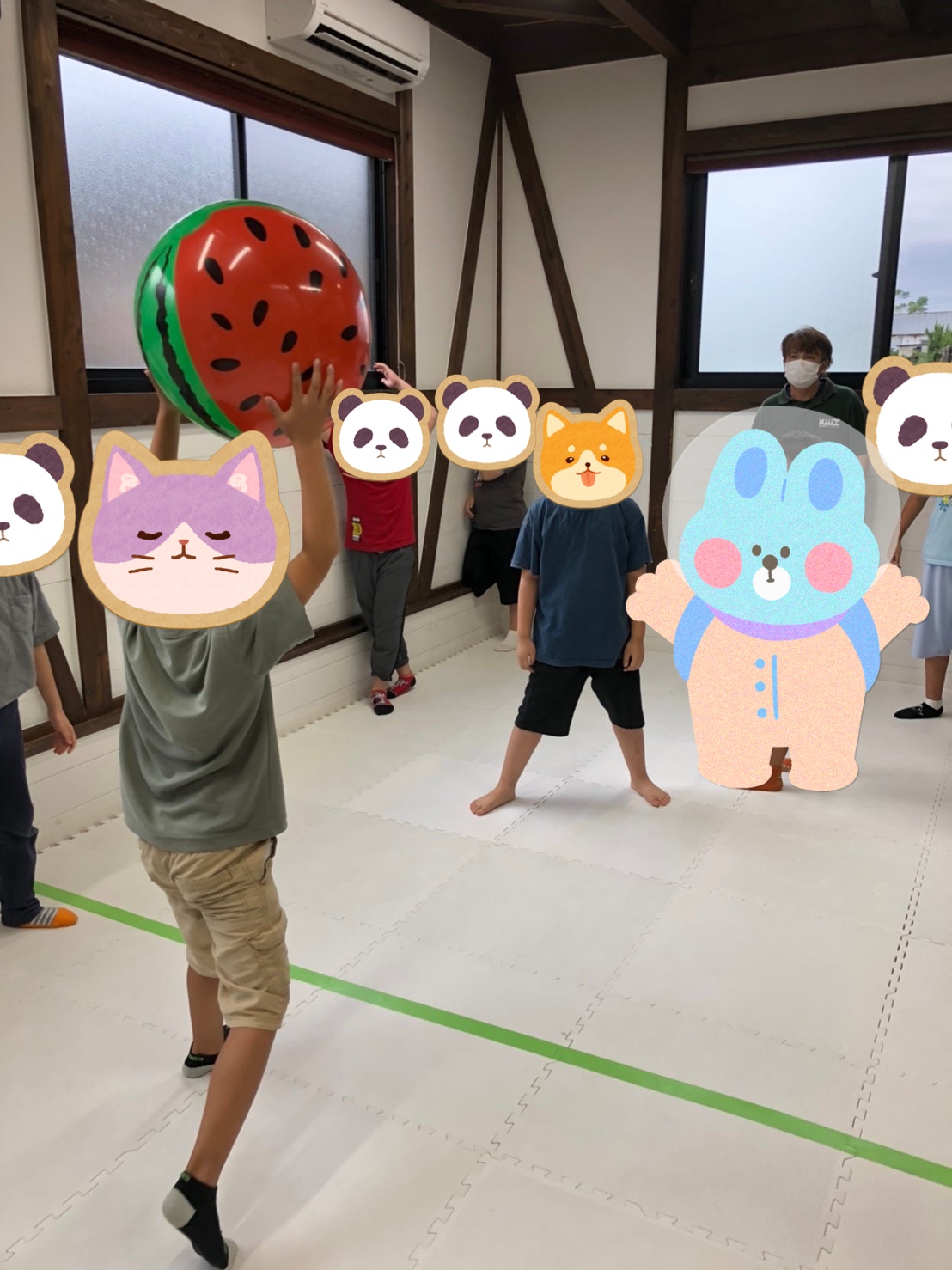 『もし顔や頭にボールが当たってしまったらセーフ』というルールで、ビーチボールを使ってスタート💨💨