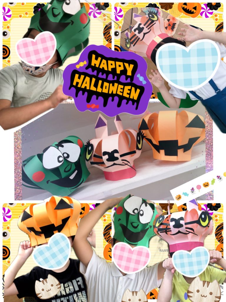 ハロウィンの時期が近いので画用紙で出来るお面を作りました🎃🎀✨画用紙を切って両面テープで止め、顔をつけると立体感のあるお面が出来上がります。キートにつくとこのお面をかぶって活動するこども達がとってもかわいいです😍💓💜今後もハロウィンにちなんだ工作を取り入れてハロウィンの準備をしていきます🎃👻